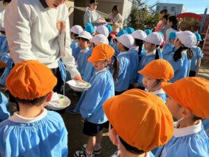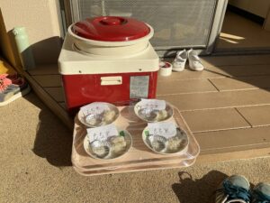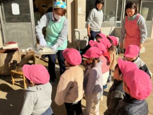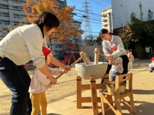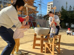 皆で声を合わせて「ヨイショー!」と掛け声をしてお餅をつきました。