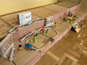 車・レールセット(写真手前)、レゴブロック(写真奥)、アンパンマンの人形ブロック(写真段下)でした!