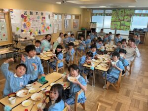 普段と机の向きを変えてお友達とお話ししながら食べるご飯はとっても楽しくていつもより美味しかったみたいです✨